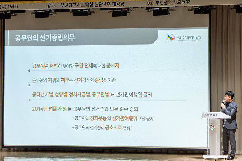 부산시교육청은 이번 직장교육을 통해 선거관련 법령에 대한 이해도를 높이고, 선거 기간 중 발생할 수 있는 위법·부적절 사례를 사전에 예방함으로써 공직자의 책무성을 한층 강화할 것으로 기대하고 있다.